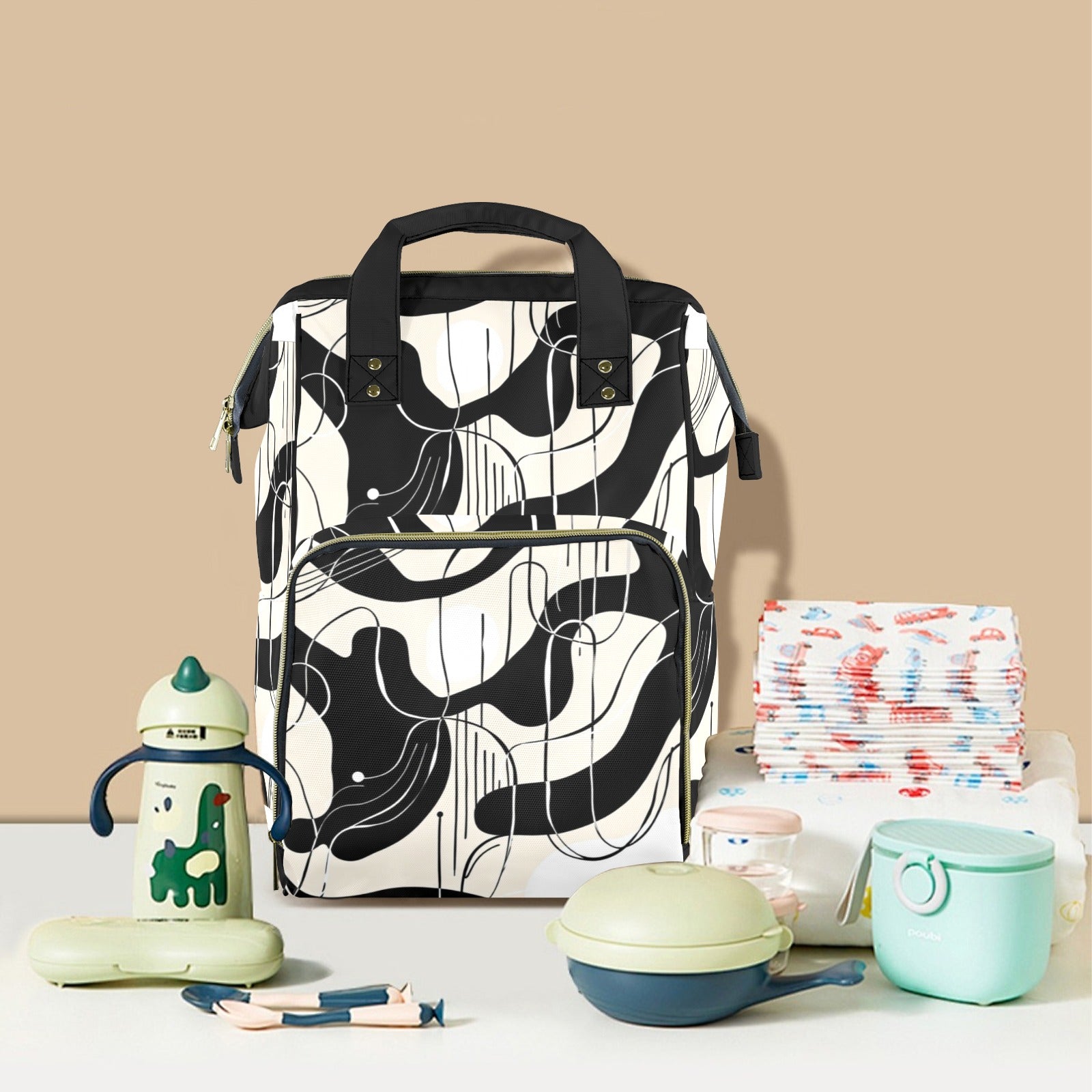 Finally, a diaper bag backpack that complements your modern aesthetic. The Modern Abstract Diaper Bag is the perfect blend of high-fashion style and essential parenting functionality. Featuring a striking black and white abstract pattern, this bag works just as well as a chic everyday backpack as it does a highly organized baby bag. It’s the essential accessory for modern parents on the go.