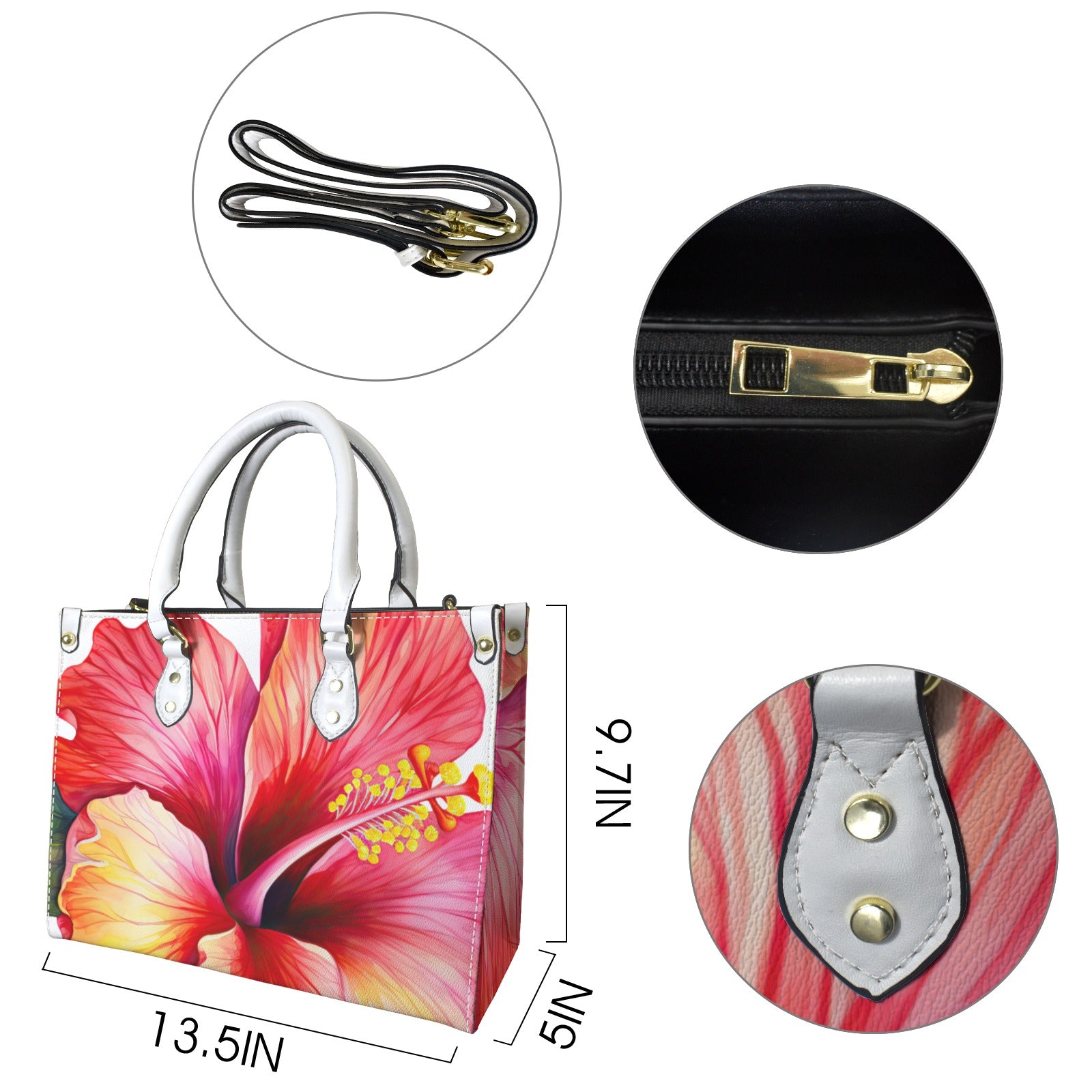 "Radiant Hibiscus" Artistic Floral Premium Vegan Leather Handbag