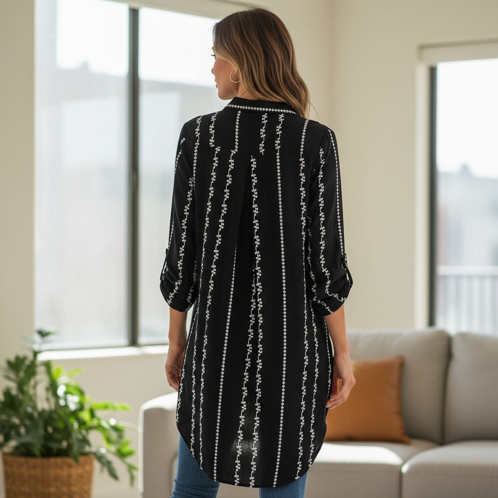 The bold graphic stripe and modern color block design create a standout, chic look, while the soft, comfortable fabric makes it easy to pack and wear straight out of your suitcase. Its relaxed silhouette is incredibly flattering and makes it an ideal base for layering. Pair it with leggings, a jacket, and boots for cozy autumn sightseeing, or wear it on its own for the last warm getaways. It's the essential versatile travel dress that simplifies packing and keeps you stylish on the go.