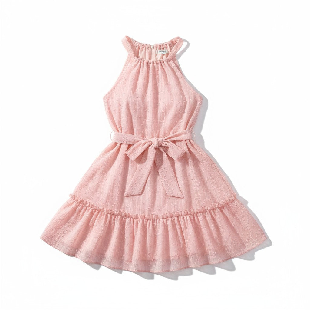 Chic and sophisticated, this solid halter neck dress is a go-to piece for effortless style. Made from 100% polyester, it offers a smooth, lightweight feel with a flattering drape. The sleeveless halter neckline frames the shoulders beautifully, while the waist tie accentuates your silhouette. Delicate ruffle detailing adds movement and a feminine finish, making this dress perfect for both casual and semi-formal occasions. Whether you're headed to a date, brunch, or a daytime event, this versatile piece ensures you’re always polished.