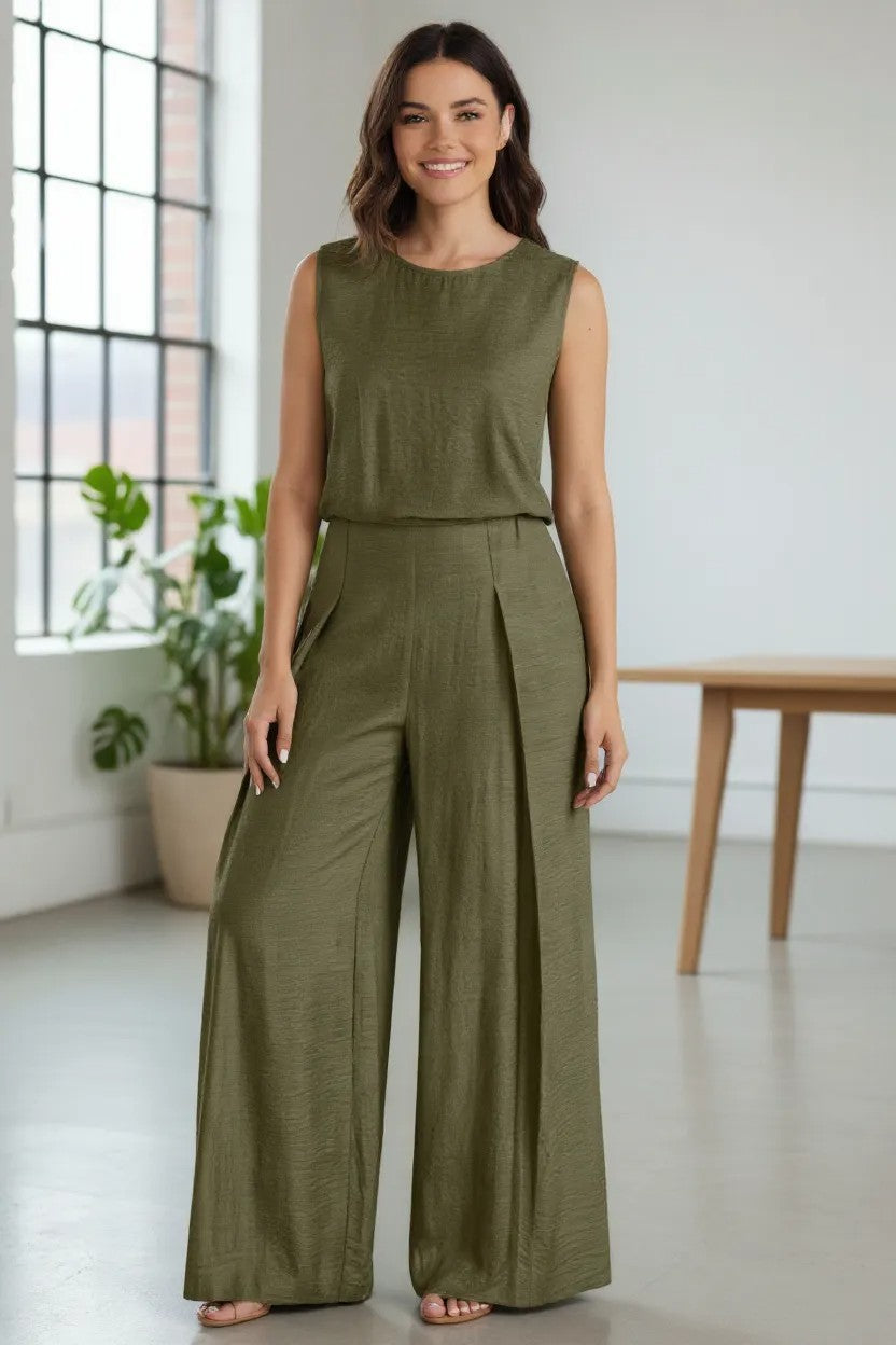 Coordinated Set: Includes a simple tank top and matching wide-leg pants.